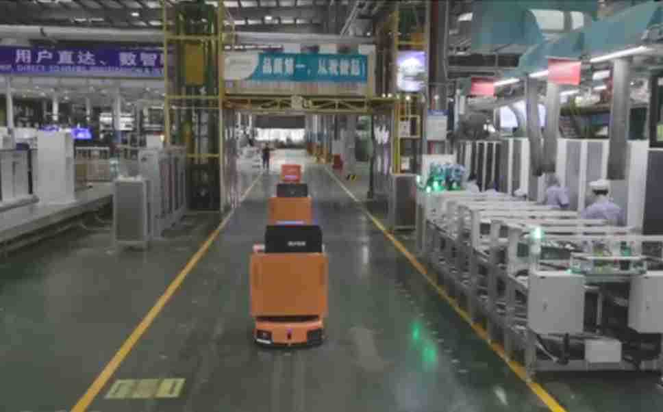 为车载冰箱物流配送打造的智能解决方案,,包含产中物流通过潜伏举升AMR搬运至线边,,产后成品物流智能仓储,,,流程包含产中物流智能齐套入库,,线边安灯叫料AMR智能配送至线边,,成品入库、、、、出库,,通过无人堆高车机器人,,,,智能仓储管理替代人工作业管理,,实现更高存储、、更高效率、、、更具柔性化的解决方案。。